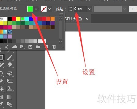 2、 将描边设为0,填充颜色调整为绿色。