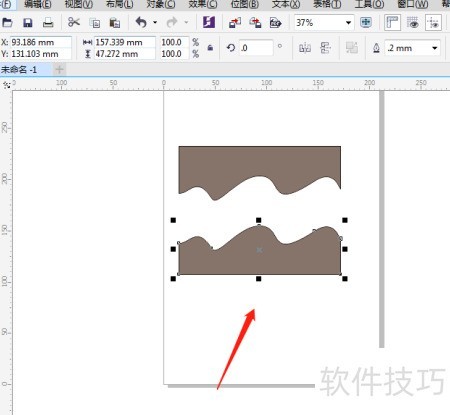 1、 启动CorelDRAW,按图示将图形切割为两个不规则部分。