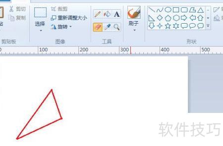 1、 打开绘图软件,将前景色调为红色,用直线工具绘制一个三角形。