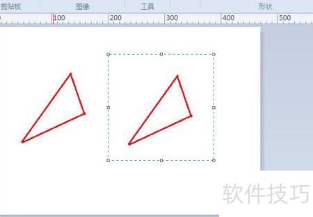 3、 点击编辑并粘贴,选中第二个三角形后执行旋转中的水平翻转操作。