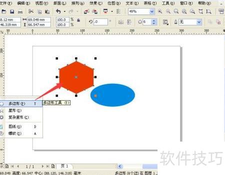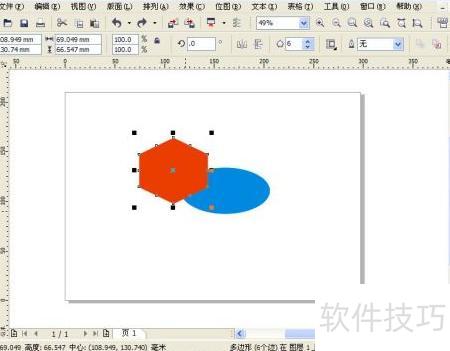 4、 选用多边形工具,在工作区绘制一个六边形,并填充红色,效果所示。