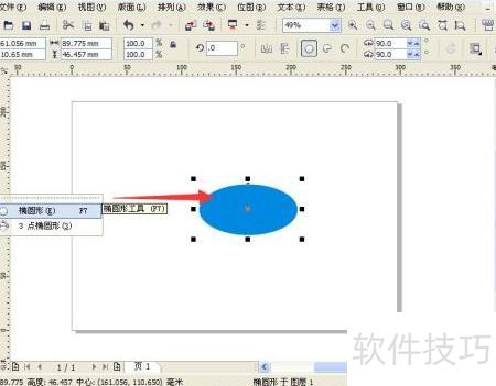 3、 使用椭圆形工具在工作区绘制一个椭圆,并随意填充蓝色,效果所示。