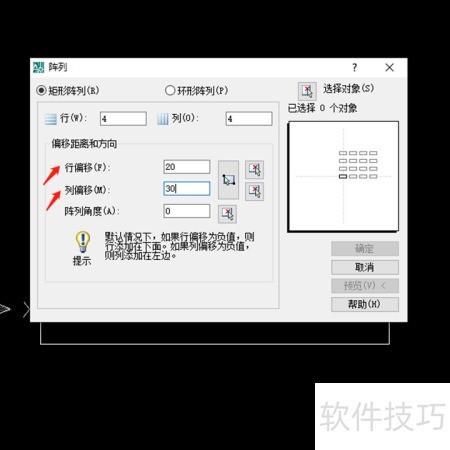 3、 输入行列的偏移距离。