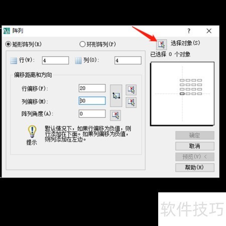 2、 选择矩形阵列并输入行列数量。