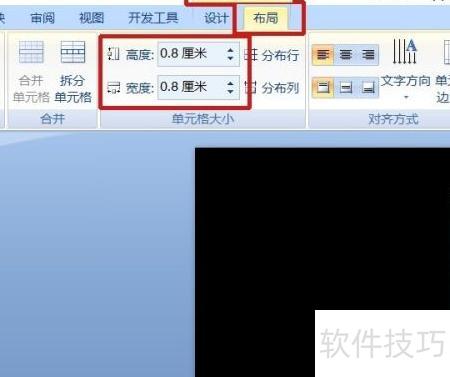 4、 在表格工具的布局中调整单元格大小,将宽度和高度设为相同数值,即可使表格呈现正方形。