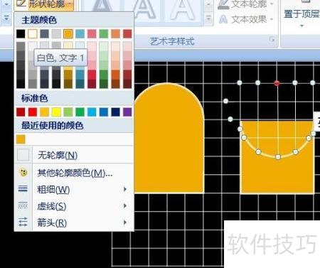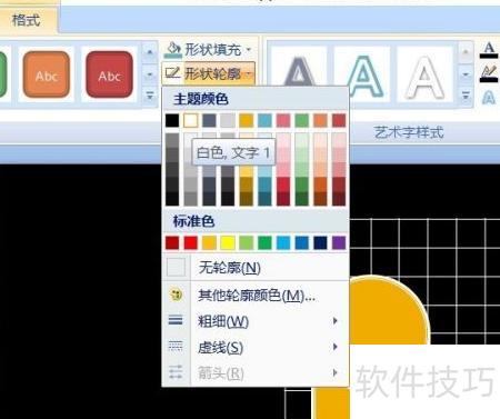 9、 选中两个图形,在格式中将轮廓颜色设置为白色。