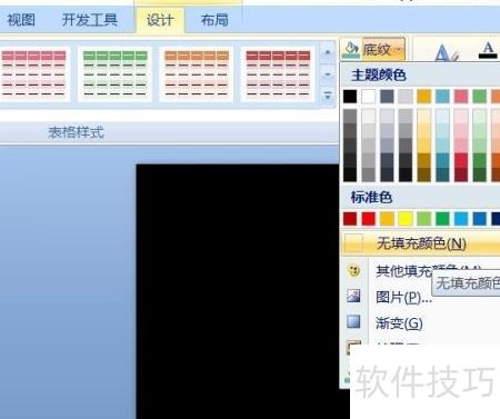 5、 在表格工具的设计选项中,选择无填充色以清除底纹,从而去掉表格原有颜色。