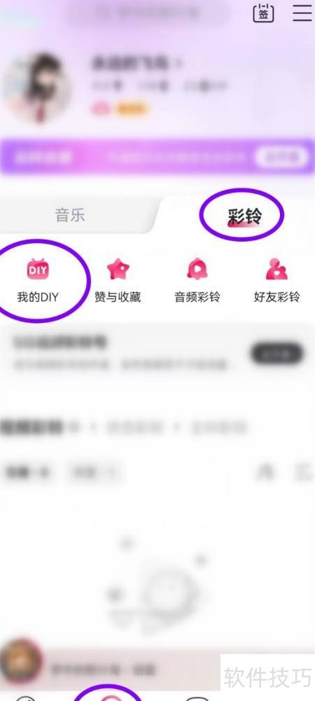 1、 进入APP个人页面,开启彩铃功能,选择我的DIY选项。
