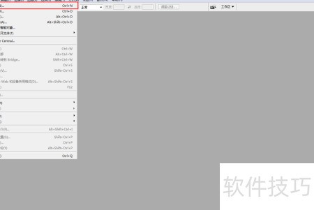 1、 启动已安装的Photoshop CS3程序,进入界面后,在左上角标题栏选择文件菜单,随后在弹出的选项中点击新建,也可直接使用快捷键,创建一个新的空白文档,具体操作可参照图示步骤进行。