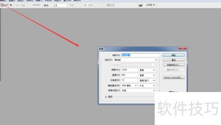 2、 点击新建按钮,在弹出的对话框中设置文档尺寸、分辨率、颜色模式等参数,确认无误后点击确定即可。