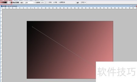 4、 选择工具箱中的渐变工具或按快捷键,在标题栏下方设定为线性渐变,随后在文档内由右下角向左上角拖动进行渐变填充。