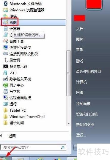 1、 在电脑桌面的开始菜单中,进入附件打开画图程序。