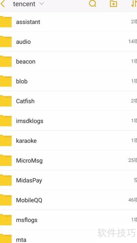 6、 在腾讯应用内查找并进入MicroMsg文件夹。