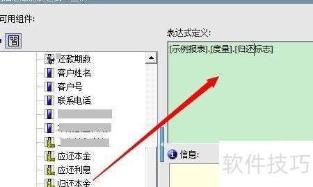 5、 将左侧查询数据项拖至右侧表达式定义区域,便于构建过滤条件。
