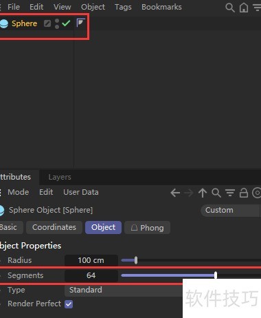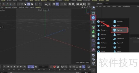 1、 启动C4D软件,新建球体并增加其细分设置。
