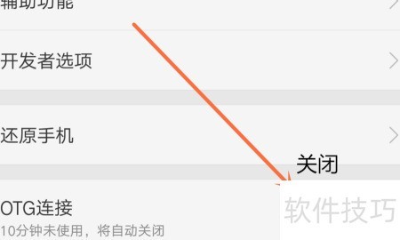 6、 关闭OTG开关或等待十分钟自动关闭,具体操作所示。
