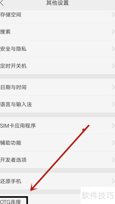 2、 进入其他设置,找到OTG选项并开启开关。