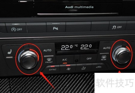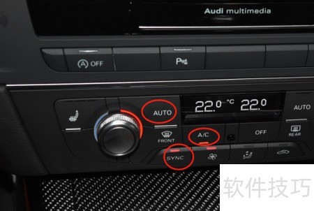 3、 AUTO、SYNC、A/C按键分别控制自动空调、双区温控和制冷功能。