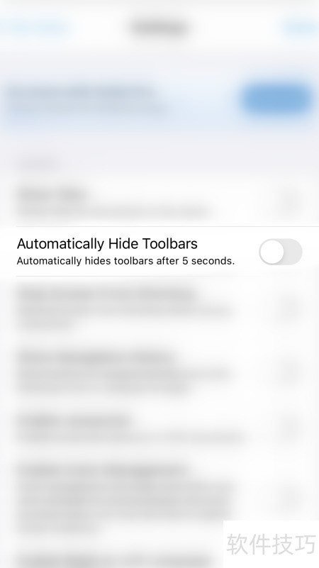 4、 当Automatically Hide Toolbars后的圆点变成灰色时,表示已成功关闭Xodo的自动隐藏工具栏功能。