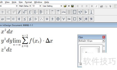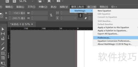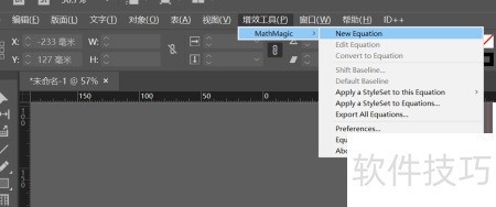 6、 编辑公式需在InDesign中启用增效工具,点击new equation即可开启函数编辑器窗口进行操作。