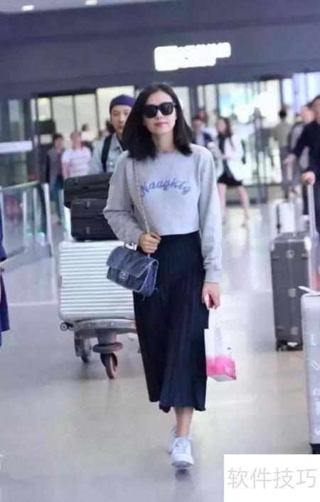 4、 中性风搭配柔美长裙,时尚又舒适。