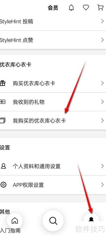 1、 进入优衣库用户页面,点击我购买的优衣库心衣卡即可查看。