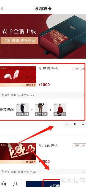 4、 进入选购页面,挑选心仪衣物卡,点击立即购买即可。