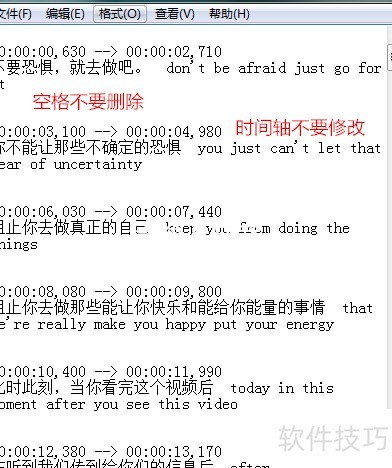 6、 打开文件后可编辑字幕内容,但请勿改动中间的时间轴与空格部分。
