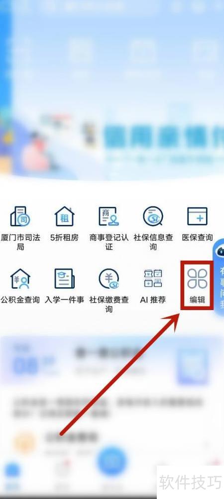 1、 打开i厦门APP,进入编辑业务服务页面。