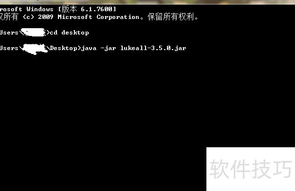 4、 首先需确保电脑已正确配置Java运行环境,这是打开JAR文件的基本条件。若环境已搭建完成,接下来应进入目标JAR文件所在的目录。例如,若文件位于桌面,可在命令行中输入cd desktop切换至桌面路径,所示操作即可继续后续步骤。
