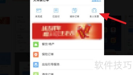 3、 进入订单页面,点击右上角的本人车票即可。