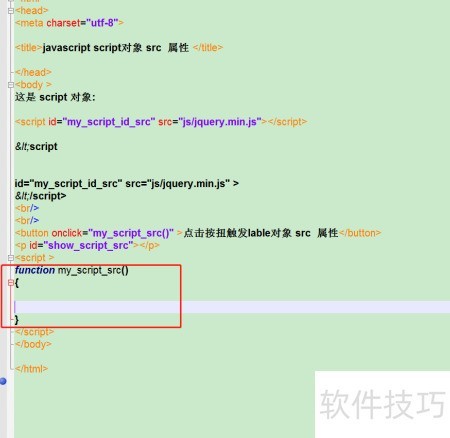 4、 添加一个p标签,并为其设置id属性值为show_script_src。