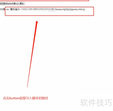 7、 在浏览器中打开script_src文件,点击按钮即可查看src属性引入的文件路径效果。