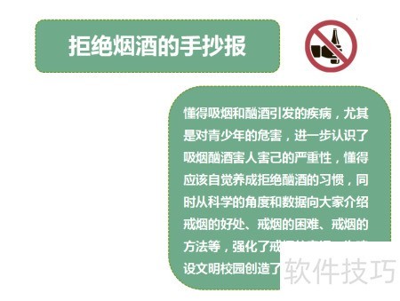 3、 绘制文本框,填入拒绝烟酒手抄报的主题内容与相关知识。