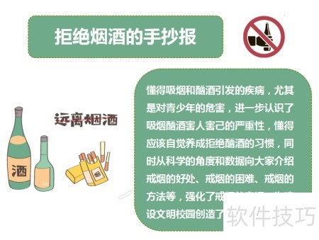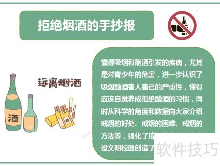 分享拒绝烟酒手抄报的绘制方法,供参考学习。
