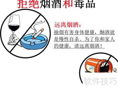 2、 在白纸左上角画一幅禁烟禁酒的简笔画。