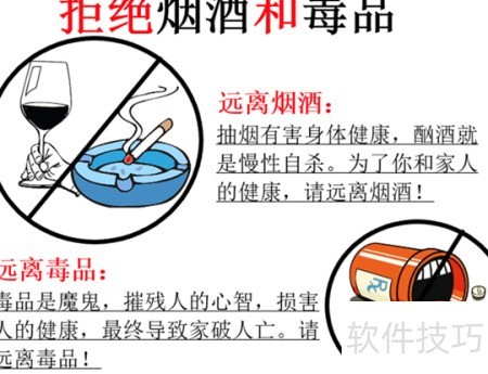 1、 在白纸顶端工整书写拒绝烟酒和毒品。