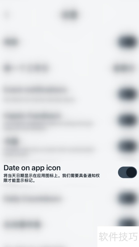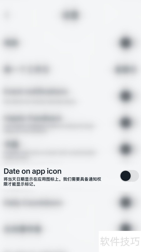 3、 在设置中点击Data on app icon选项旁的圆点。