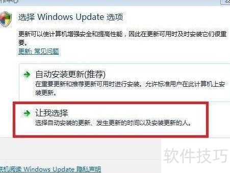 3、 随后进入Windows更新设置,点击让我自行选择选项,操作所示。