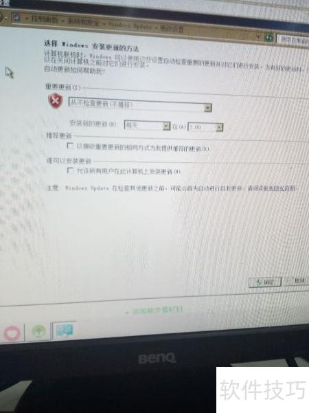 5、 重要更新选项,请勿选择从不检查更新(不推荐),所示。