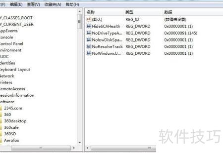 2、 进入注册表编辑器后,依次展开以下路径:HKEY_CURRENT_USER、Software、Microsoft、Windows、CurrentVersion、Policies、Explorer。