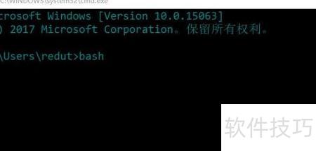 3、 在命令提示符中输入bash命令(Win10支持Linux子系统),未开启者可搜索百度经验查找启用方法。