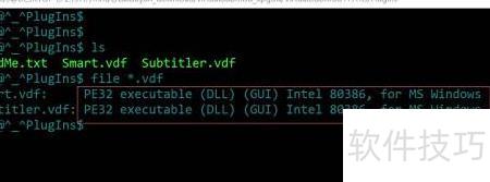 4、 执行bash后,可利用file命令识别vdf文件的类型。中的.vdf文件属于PE格式,实为VirtualDubMod的插件文件,常用于视频处理软件的功能扩展与增强。