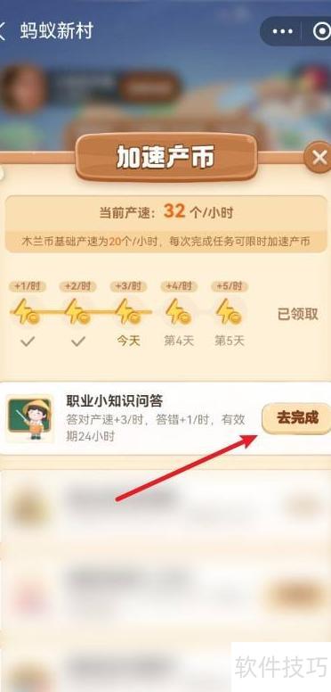 1、 在蚂蚁新村点击图示按钮即可进入答题环节。