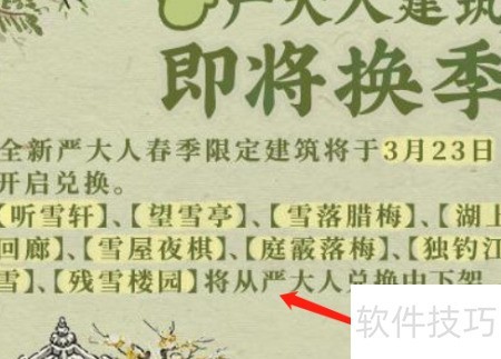 1、 春季限定新建筑上线,包括玉兰知春、绿园奇石等,玩家可前往严大人处兑换获取。