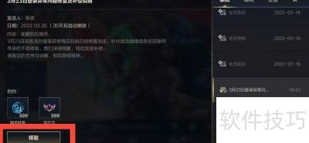 3月23日登录异常问题修复后,玩家可进入游戏主界面点击邮件图标,在相关补偿说明邮件中选择领取,即可获得排位币与魄罗能量奖励,具体步骤详见官方通知指引。