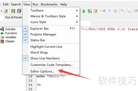 2、 点击下拉菜单,选择编辑器选项进行设置。