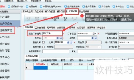 20、 为便于演示,由管理员在进销存系统中处理采购订单。