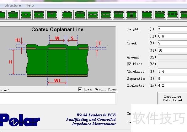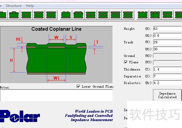 2、 当使用50欧姆单线阻抗,选用FR-4材料、双层板且板厚为1.6毫米时,可依据相应参数进行计算。