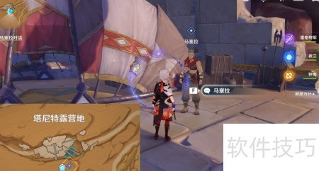 5、 传送到千壑沙地神像,到营地找马塞拉对话。